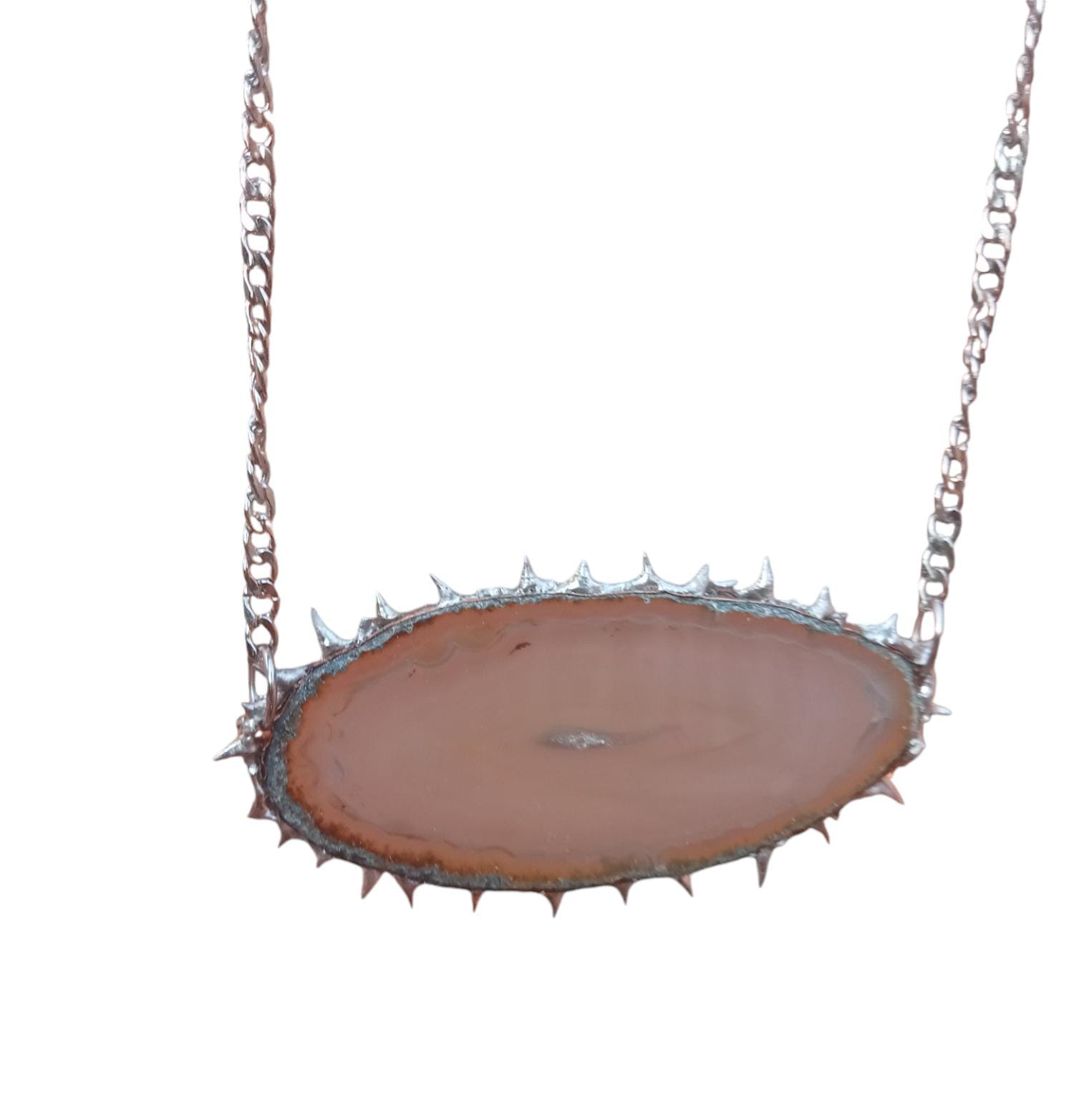 Spiky collar made by lake with a natural agate.